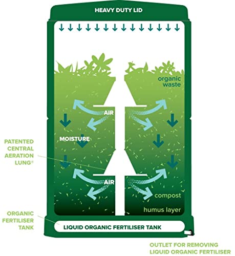Verfügt über ein Feuchtigkeitsrückführungssystem, das bedeutet, dass Sie Ihre Lebensmittel-/Gartenabfälle einfach hineingeben und den Aerobin an die Arbeit bringen können.