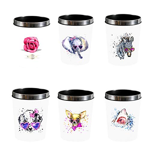 Specification: JUNGEN Abfallbehälter Leder Mülleimer mit Pressring aus Edelstahl Mode Cartoon Blume Tiermuster Mülltonnen für Badezimmer Schlafzimmer Wohnaccessoires (Elefant)