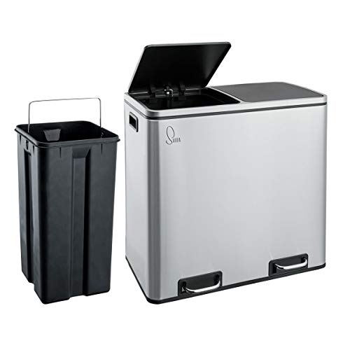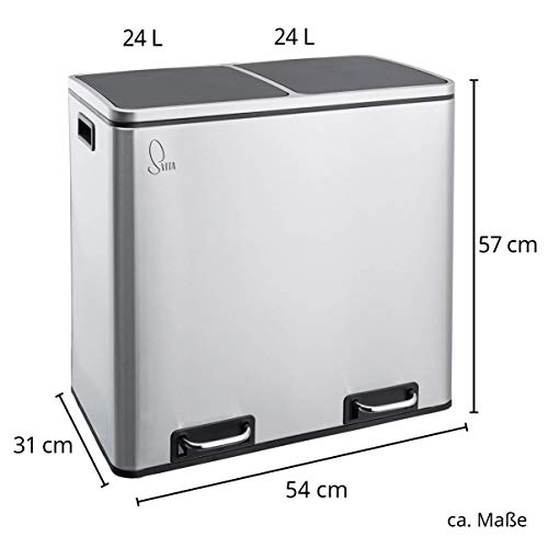Specification: SVITA TM2X24 Treteimer 48 Liter Abfalleimer Mülleimer Design Mülltrennung Papierkorb Küchen-Ordnung Trennsystem (Edelstahl)